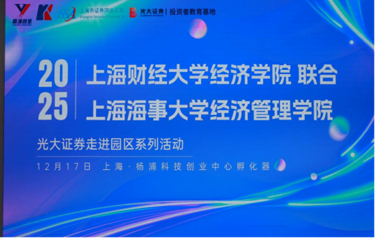 12月17日下午,上海海事大学经济管理学院联合光大证券、光大期货、上海财经大学经济学院、杨浦科创孵化器举办的航运金融实习实践活动圆满收官。经济管理学院国际贸易与金融系主任杨旻骅副教授、上海财经大学经济学院孟大文教授、光大期货北京分公司高级业务顾问胡光、光大期货北京分公司互联网业务专家郑凯玉、光大证券财富管理总部投资者教育专家钱中平、经济管理学院航运金融专项班、物流经济专项班师生等90余人参与了活动。两校师生齐聚一堂,在科创实景中对接理论实践,在趣味互动中解锁金融新知,为校企协同育人写下生动注脚。