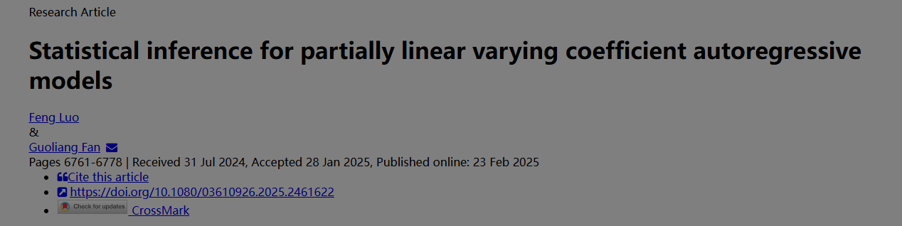 物流经济与统计系博士研究生罗凤在国际期刊《Communications in Statistics - Theory and Methods》 发表学术论文
