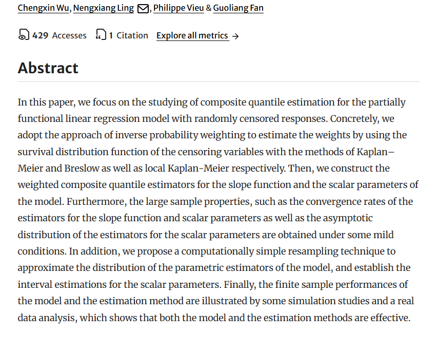 物流经济与统计系范国良老师及其合作者在国际期刊《Test》发表学术论文